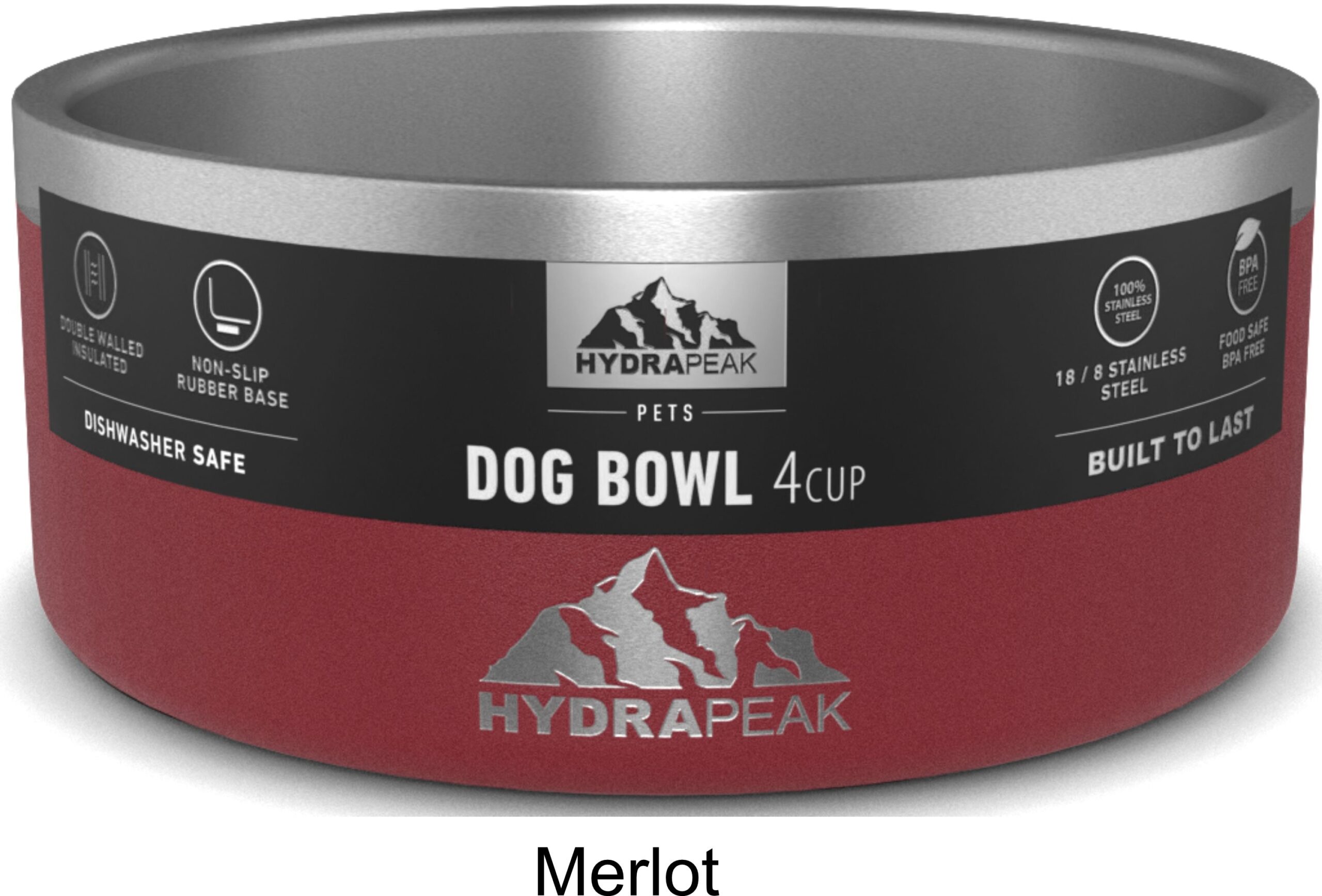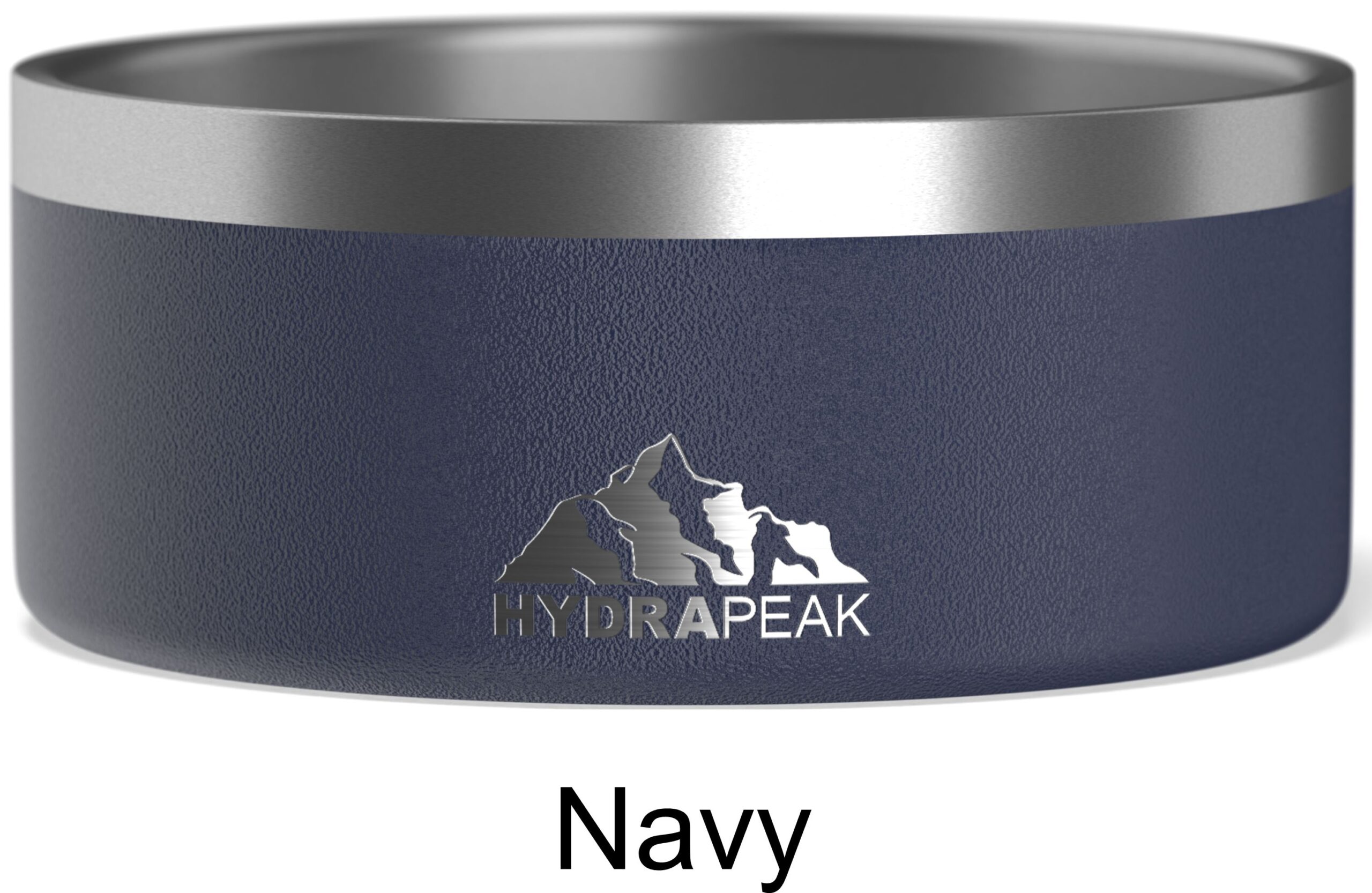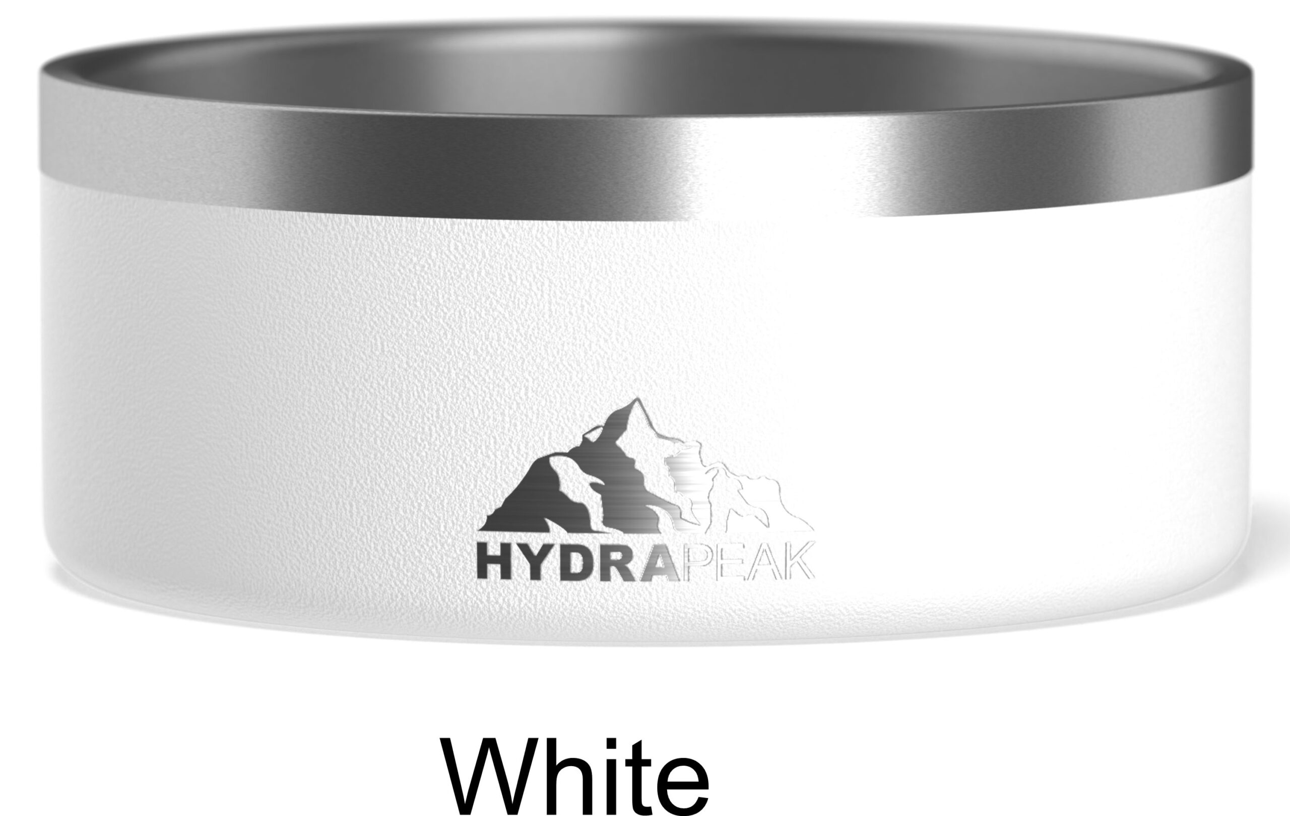MADE FOR LIFE; Pet bowls made from stainless-steel with a durable, dishwasher-safe powder coating SIZES FOR ALL PETS; Hydrapeak’s Dog Bowl holds 4 cups (32 ounce). PET SAFE; 18/8 food grade stainless steel makes this the perfect insulated dog water bowl NON-SLIP, NON-SKID; Built-in rubber pads ensure this bowl won’t slide when eating or drinking LIFETIME GUARANTEE; Hydrpeak products include a lifetime warranty against manufacturer’s defects. Complies with FDA, Prop 65. 8″ L x 8″ W x 3″ H