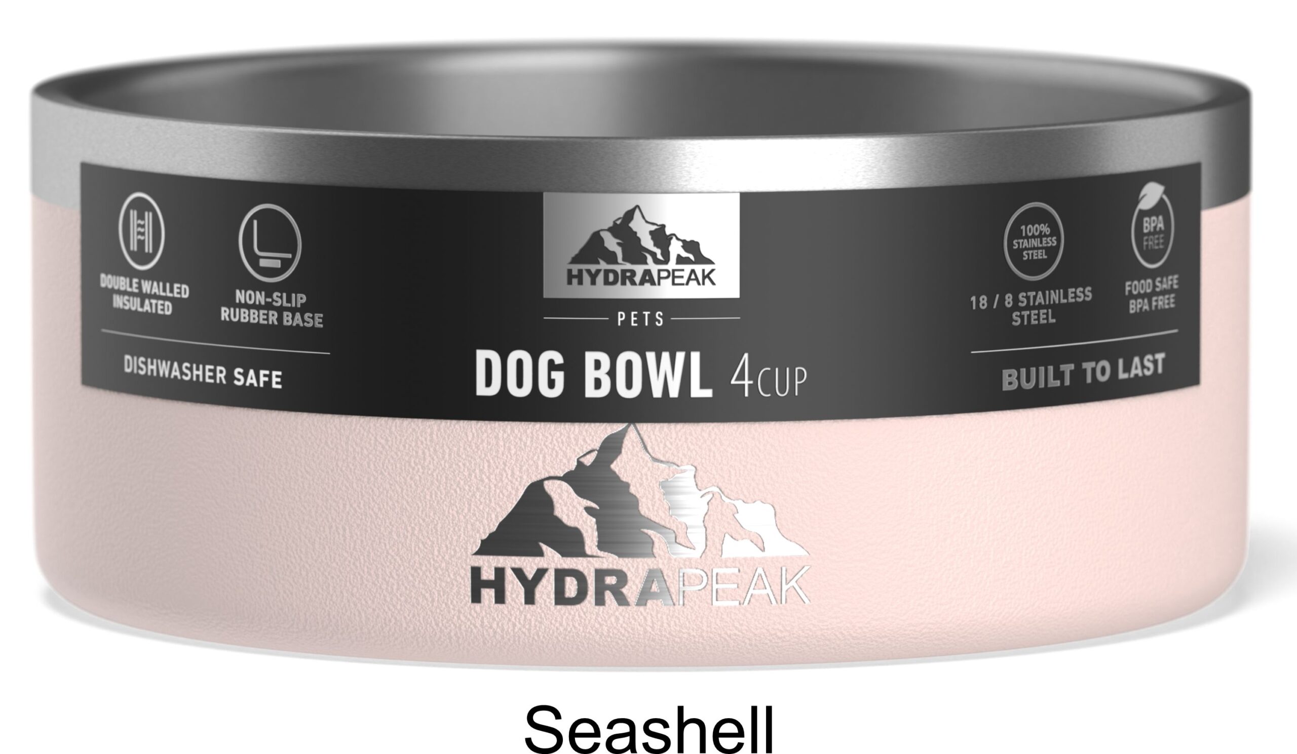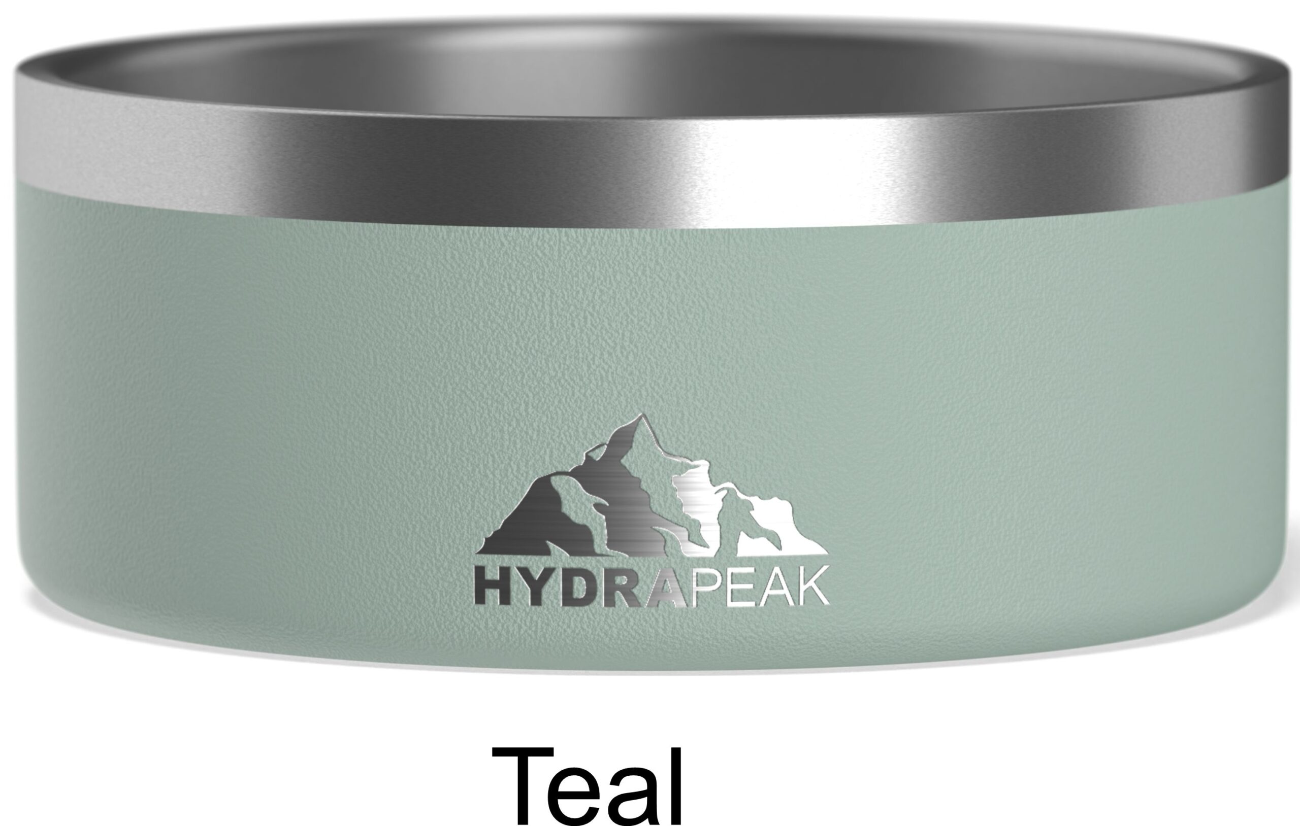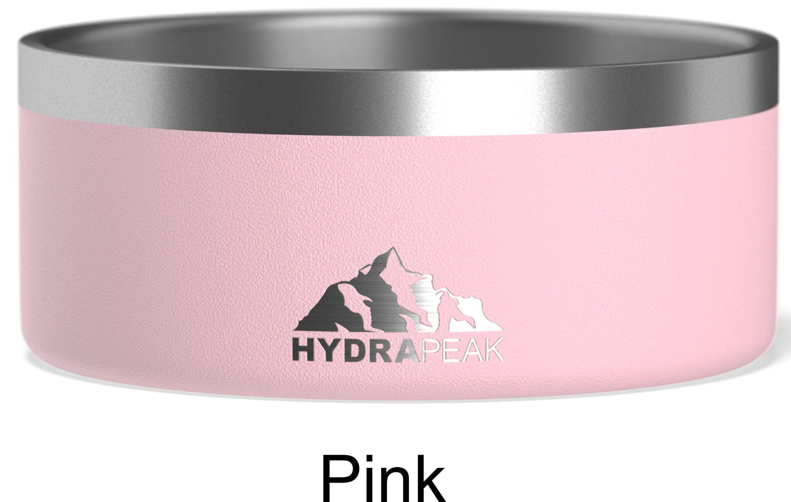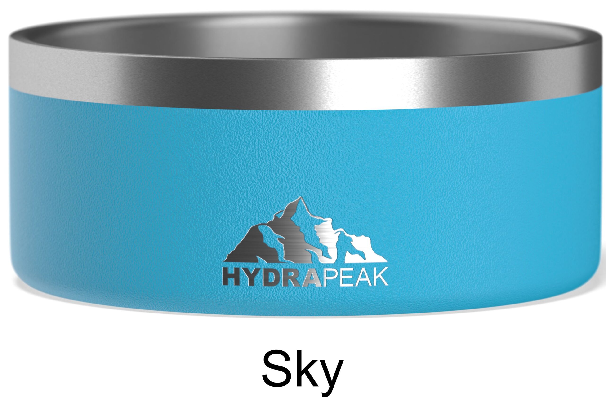 MADE FOR LIFE; Pet bowls made from stainless-steel with a durable, dishwasher-safe powder coating SIZES FOR ALL PETS; Hydrapeak’s Dog Bowl holds 4 cups (32 ounce). PET SAFE; 18/8 food grade stainless steel makes this the perfect insulated dog water bowl NON-SLIP, NON-SKID; Built-in rubber pads ensure this bowl won’t slide when eating or drinking LIFETIME GUARANTEE; Hydrpeak products include a lifetime warranty against manufacturer’s defects. Complies with FDA, Prop 65. 8″ L x 8″ W x 3″ H